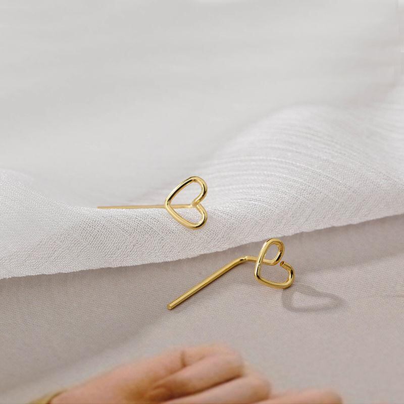 ピアス レディース スタッドピアス 透かし ハートモチーフ シンプル スタイリッシュ ミニマルデザイン 小ぶり 華奢 金属製 ゴールド シルバーカラー 普段使い オフィス カジュアル 耳飾り