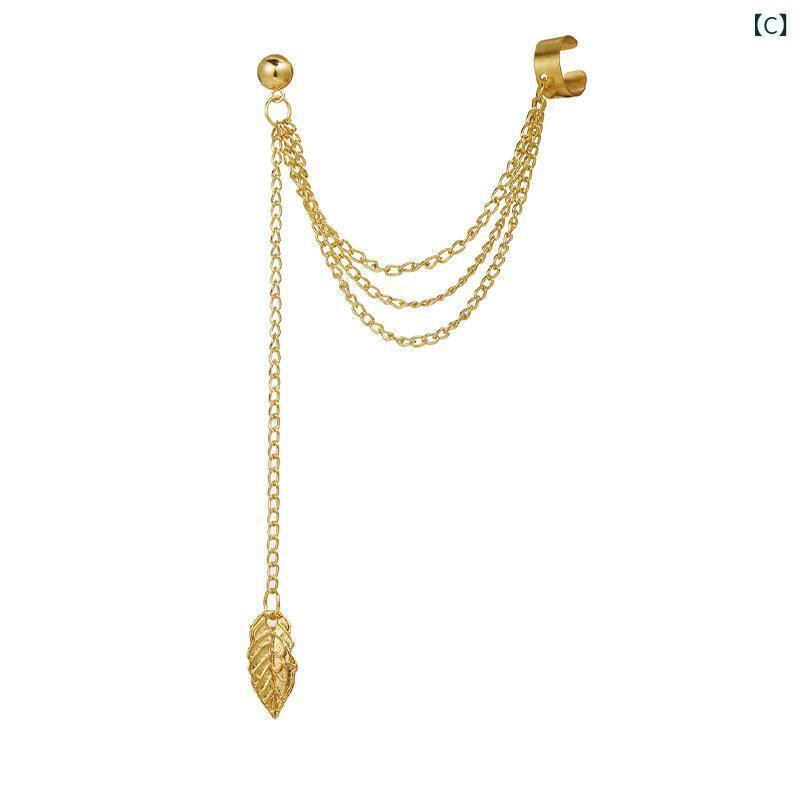 イヤリング イヤーカフ メタル リーフモチーフ 葉っぱ タッセル 個性的 ユニーク 揺れる 大ぶり ゴールド シルバー ファッション アクセサリー セット