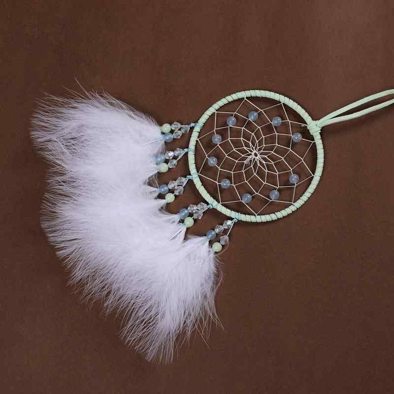 ドリームキャッチャー 車載用 羽毛 吊り下げ飾り カーアクセサリー 手作り ハンドメイド フォレストグリーン 深緑 おしゃれ かわいい お守り 幸運アイテム 車内装飾