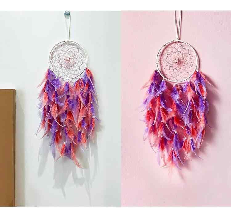 ドリームキャッチャー インディアン ボヘミアン 羽根 手作り 風鈴 ウォールデコ インテリア 壁掛け 装飾 オブジェ リビング 寝室 玄関 癒し おしゃれ かわいい