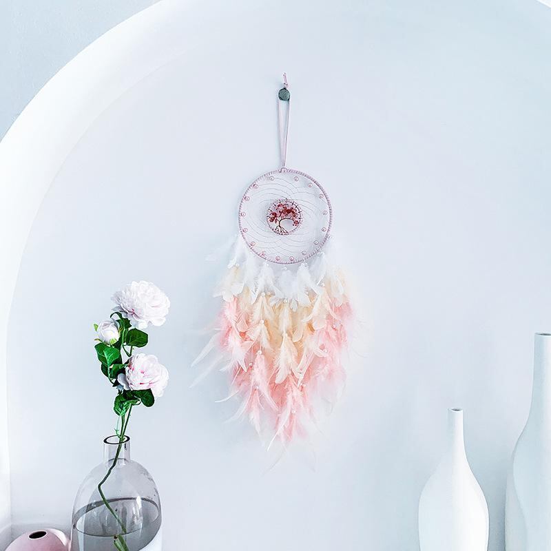 風鈴 生命の樹 天然石 さざれ石 ウィンドチャイム 羽根 フェザー 吊り下げ飾り ナチュラル ボヘミアン ガーリー かわいい おしゃれ インテリア デコレーション 寝室 窓辺