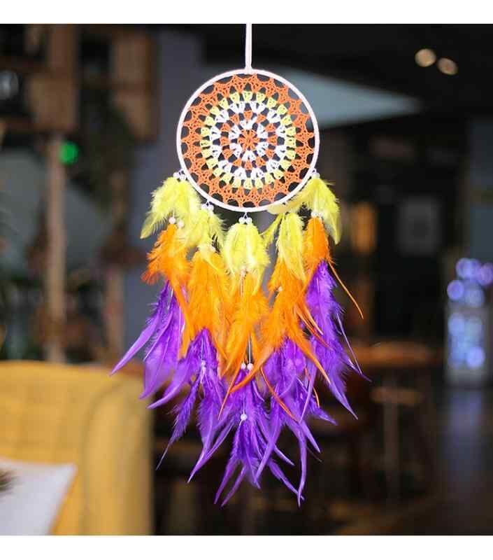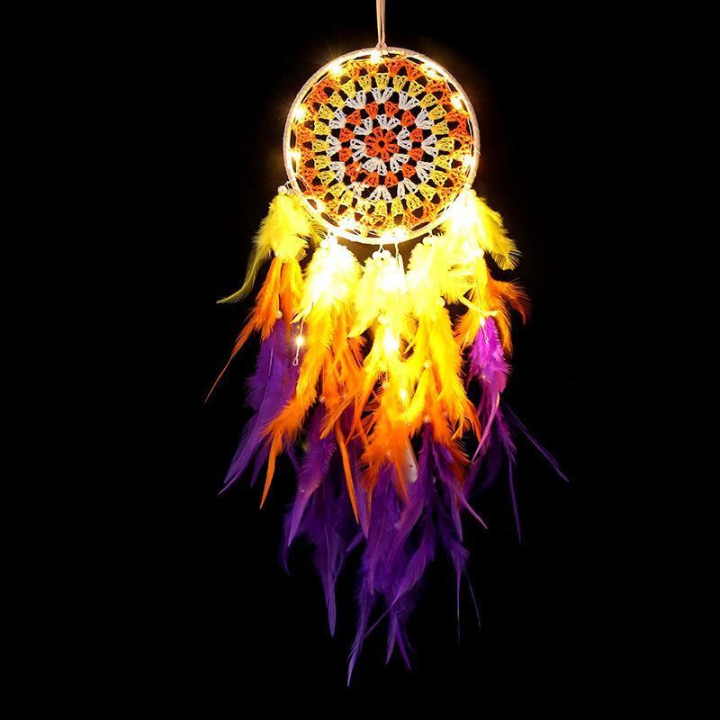 ドリームキャッチャー 女の子 レインボー 羽毛 フェザー 風鈴 ウィンドチャイム LEDライト イルミネーションライト 手作り ハンドメイド 部屋飾り ウォールデコ 壁掛け 幻想的 かわいい おしゃれ 誕生日ギフト インテリア 吊り下げ飾り