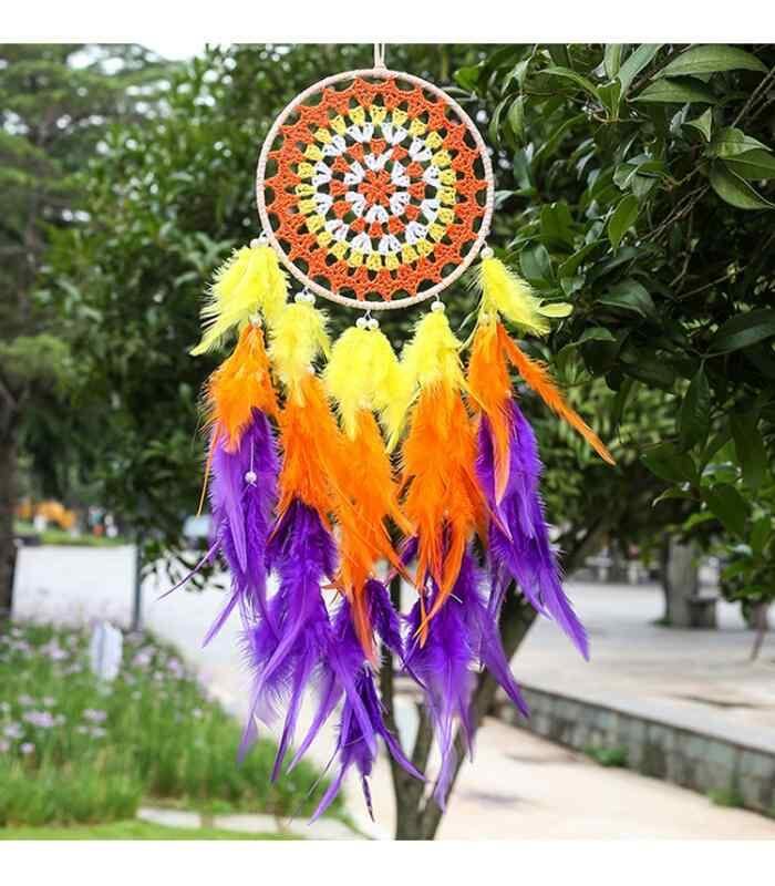 ドリームキャッチャー 女の子 レインボー 羽毛 フェザー 風鈴 ウィンドチャイム LEDライト イルミネーションライト 手作り ハンドメイド 部屋飾り ウォールデコ 壁掛け 幻想的 かわいい おしゃれ 誕生日ギフト インテリア 吊り下げ飾り | cybercart