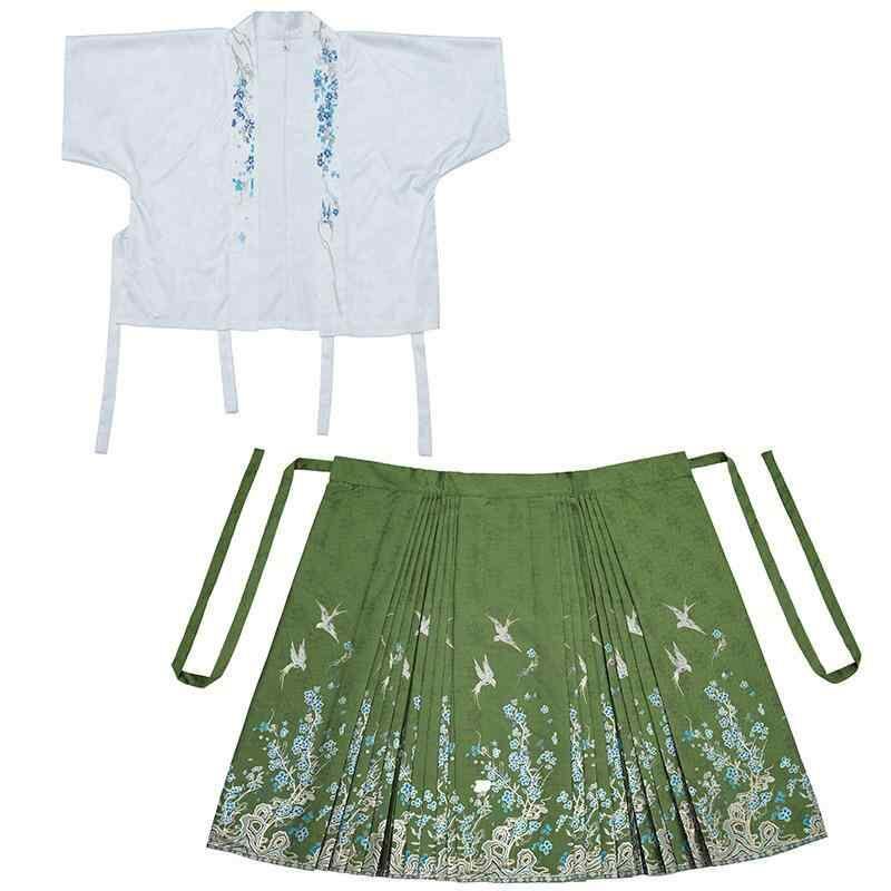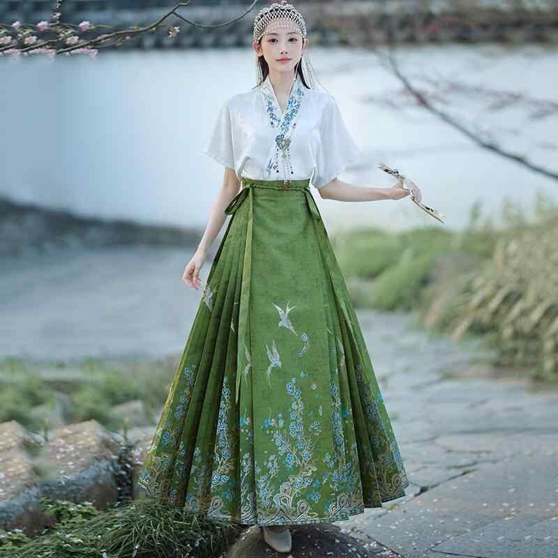 セットアップ レディース 新中華風 マミエン ロングスカート ホワイト グリーン Aライン フレア 金糸織り 刺繍 ジャカード織り 斜め襟 丁寧な作り ツーピース