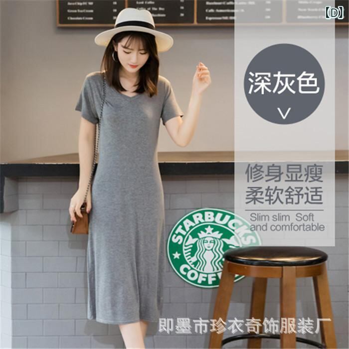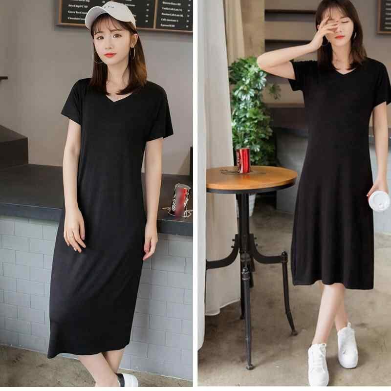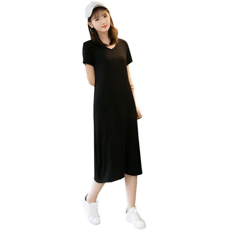 ワンピース レディース 大きいサイズ 半袖 Vネック ハイウエスト ロング丈 細見え 体型カバー モダール ストレッチ ブラック Aライン きれいめカジュアル 快適 リラックス