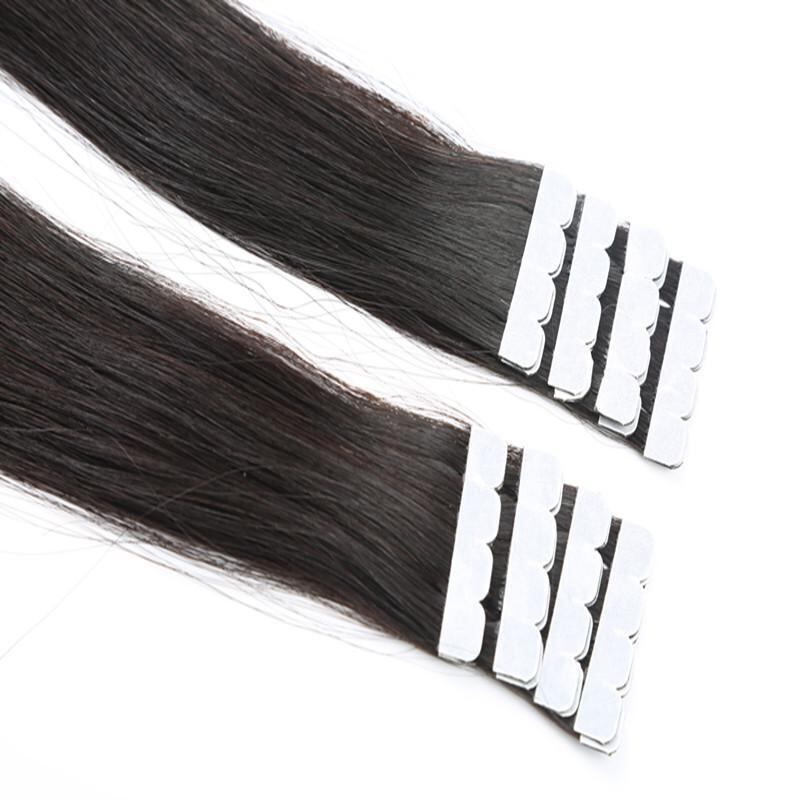 ヘアエクステ 人毛100% シームレス テープ式 付け毛 髪の毛 エクステ カラー パーマ対応 ストレートタイプ ナチュラルブラック ハンドメイド 普段使い イメチェン用 リアルヘアー