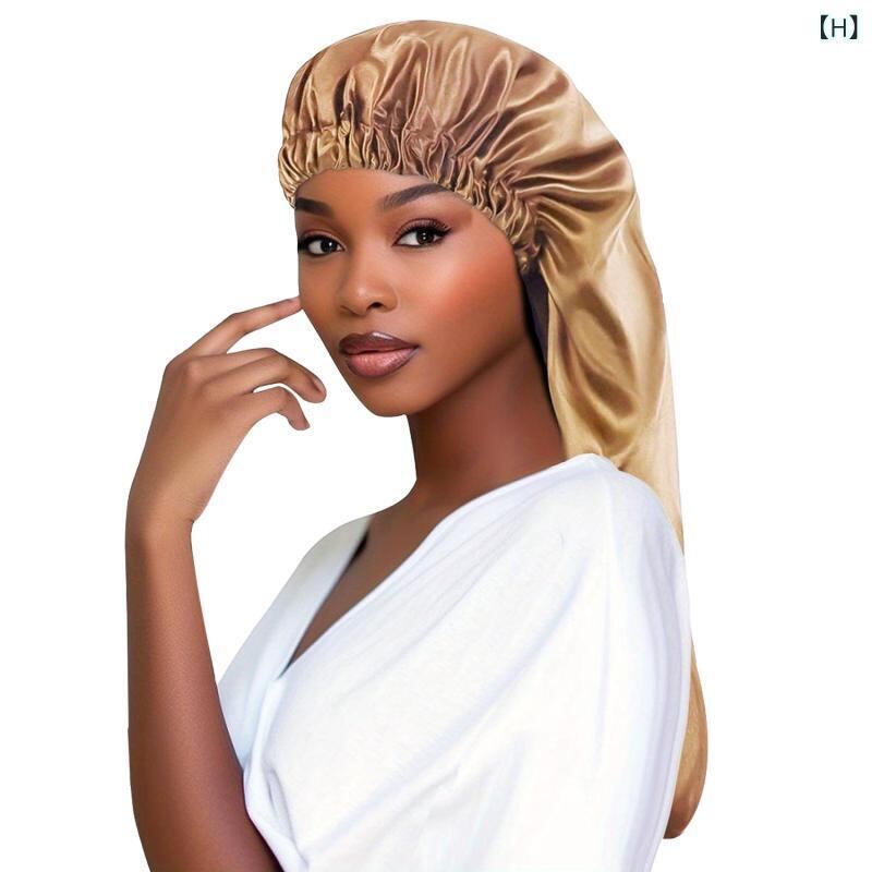 ナイトキャップ レディース 伸縮性 サテン ポリエステル ロングテール 髪保護用 就寝用 ヘアケア 美髪 シャワーキャップ 寝ぐせ防止 保湿 通気性 ルームキャップ