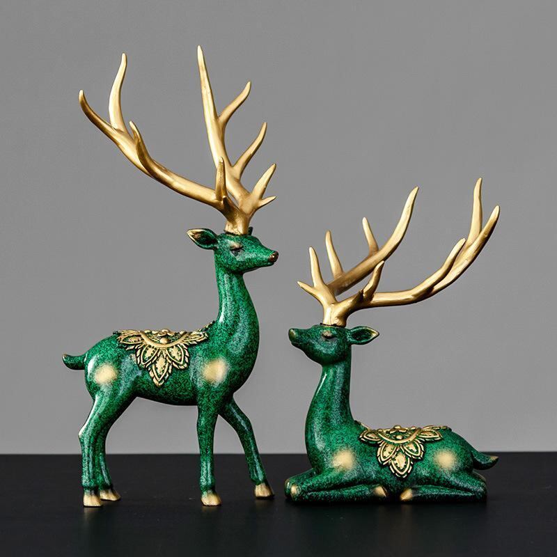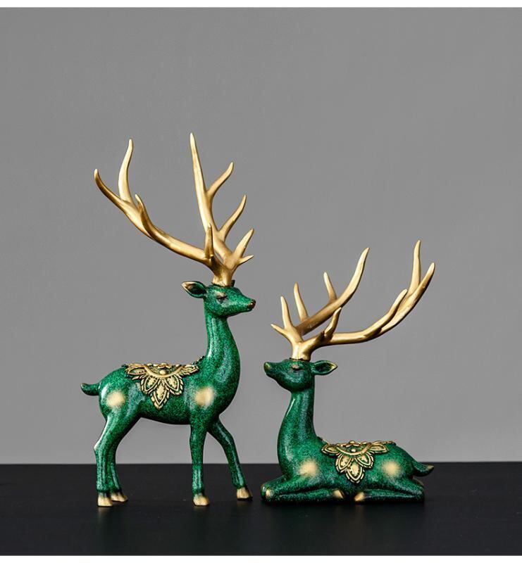 置物 カップル 鹿 シカ ペア 樹脂製 ヨーロッパ風 ライトラグジュアリー 高級感 モダン シンプル リビング テレビボード ワインキャビネット 玄関 寝室 インテリア アート オブジェ 装飾品