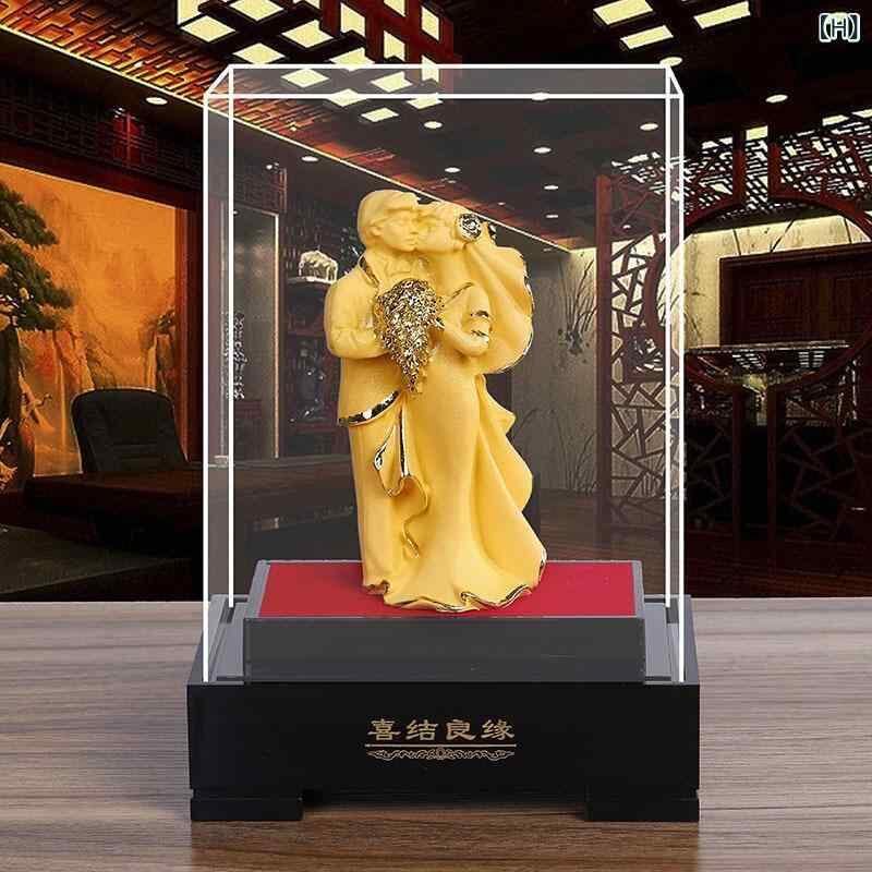 置物 婚礼夫婦像 金童玉女像 金砂細工 高級感 ゴールド インテリア オブジェ 結婚祝い 記念日 カップル 友人 親友 プレゼント ギフト 贈答品 上品 モダン