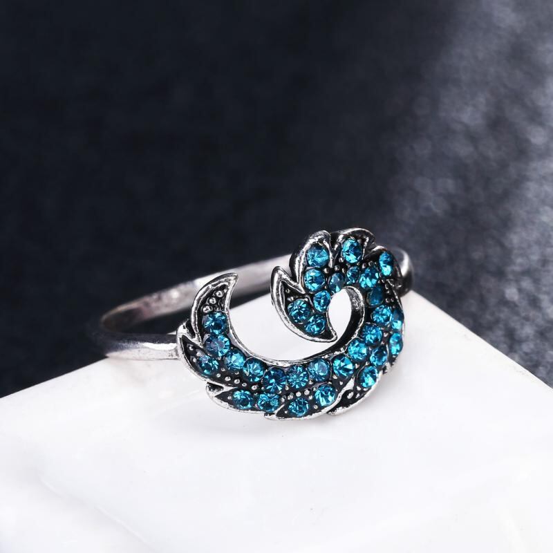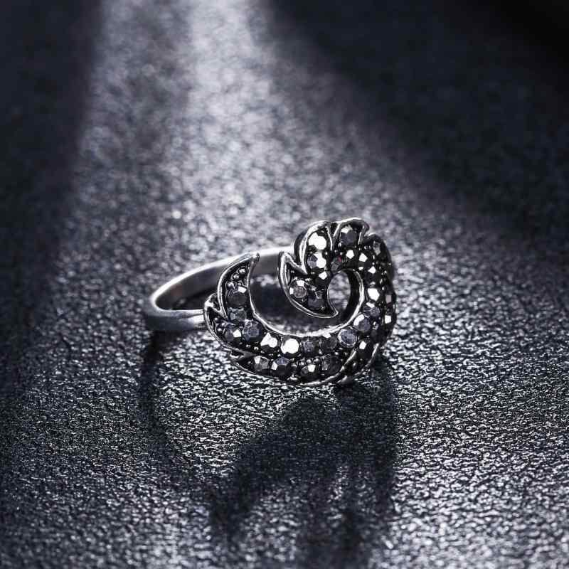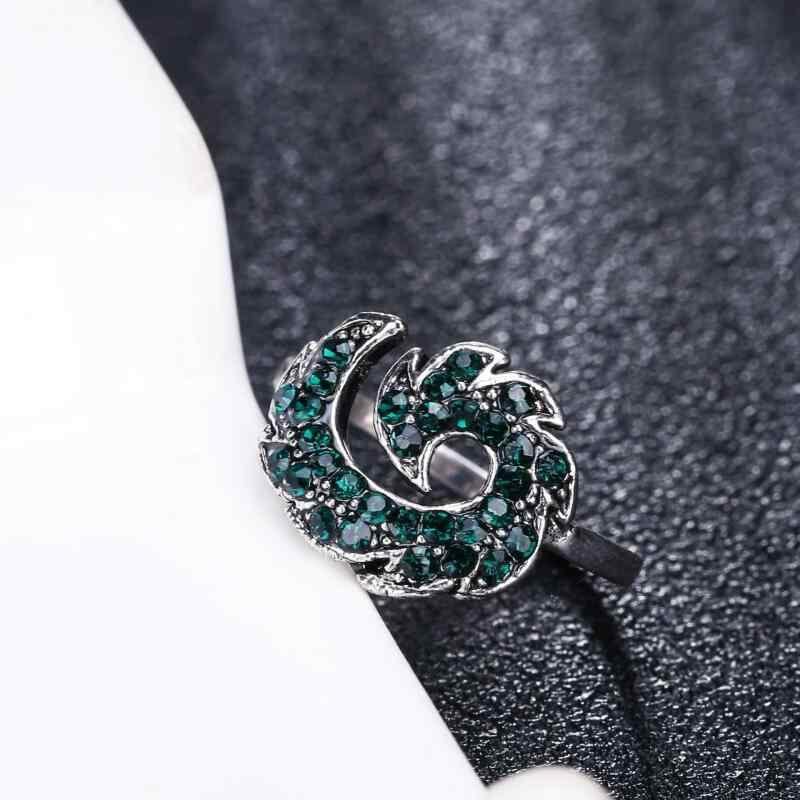 リング 男女兼用 ボヘミアン フェニックス鳥 レトロ アンティーク調 幾何学デザイン 合金製 シルバーメッキ ラインストーン 人工宝石埋め込み 精巧細工 大ぶり 上品