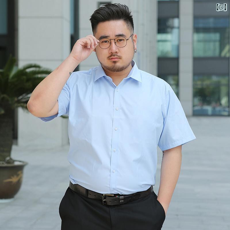 シャツ メンズ トップス 半袖 無地 ノーポケット レギュラーカラー 大きいサイズ ゆったり ビッグシルエット ワークシャツ ポリエステル混紡 イージーケア 白 黒 ネイビー スカイブルー