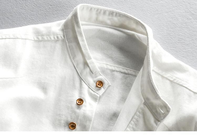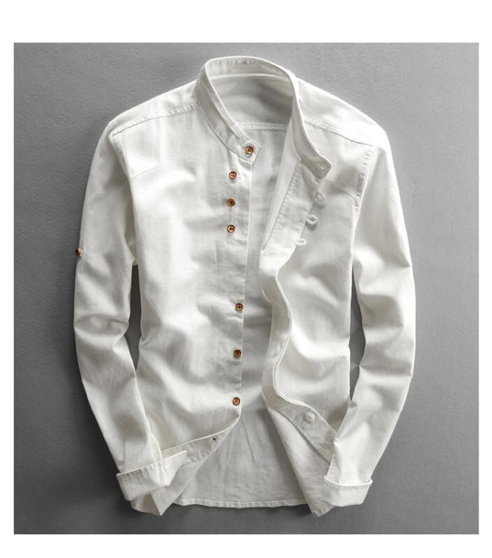 シャツ メンズ 男性用 麻 リネン 綿麻 コットンリネン 薄手 軽量 通気性 スタンドカラー 立ち襟 長袖 スリム 細身 レトロ クラシック 日常使い 普段使い 白 ネイビー ダークグレー ライトグレー