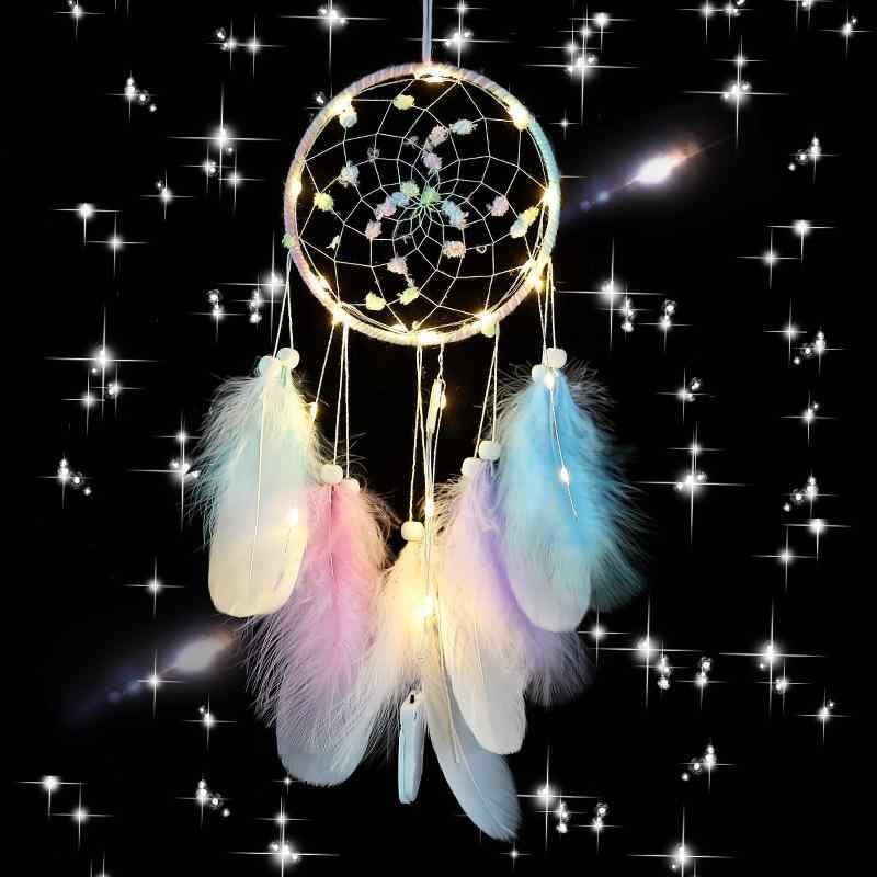ドリームキャッチャー 女の子 風鈴 壁掛け飾り インテリア 置物 オブジェ ハンドメイド 誕生日 バレンタイン ギフト プレゼント 夢かわいい ドリーミー 幻想的 レインボーカラー LEDライト付き 癒し 贈り物