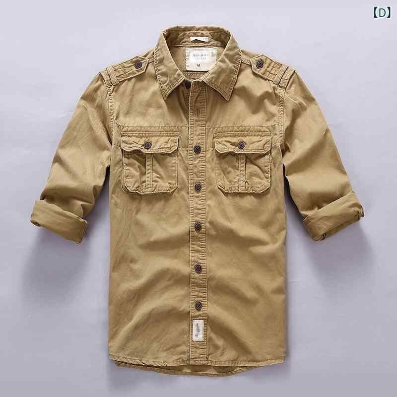 シャツ メンズ 男性用 アメカジ レトロ カジュアル 綿 迷彩柄 スリムフィット ワークシャツ 薄手 長袖 形態安定 ポケット付き 夏物 普段使い 耐久性