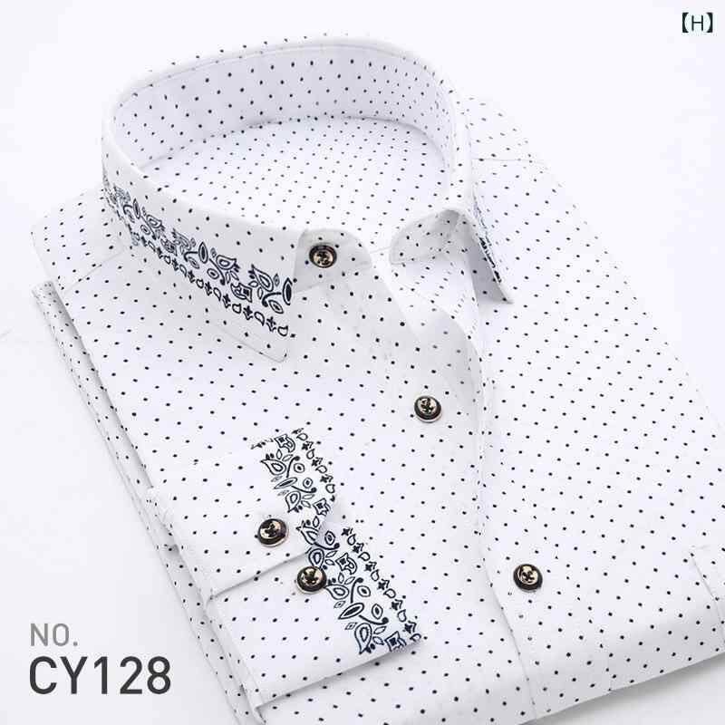 シャツ メンズ 長袖シャツ プリント 格子柄 チェック柄 スリムフィット カジュアル 普段使い 着回し 万能 ポリエステル素材 通気性 耐摩耗性 イージーケア ノーアイロン オールシーズン 角襟