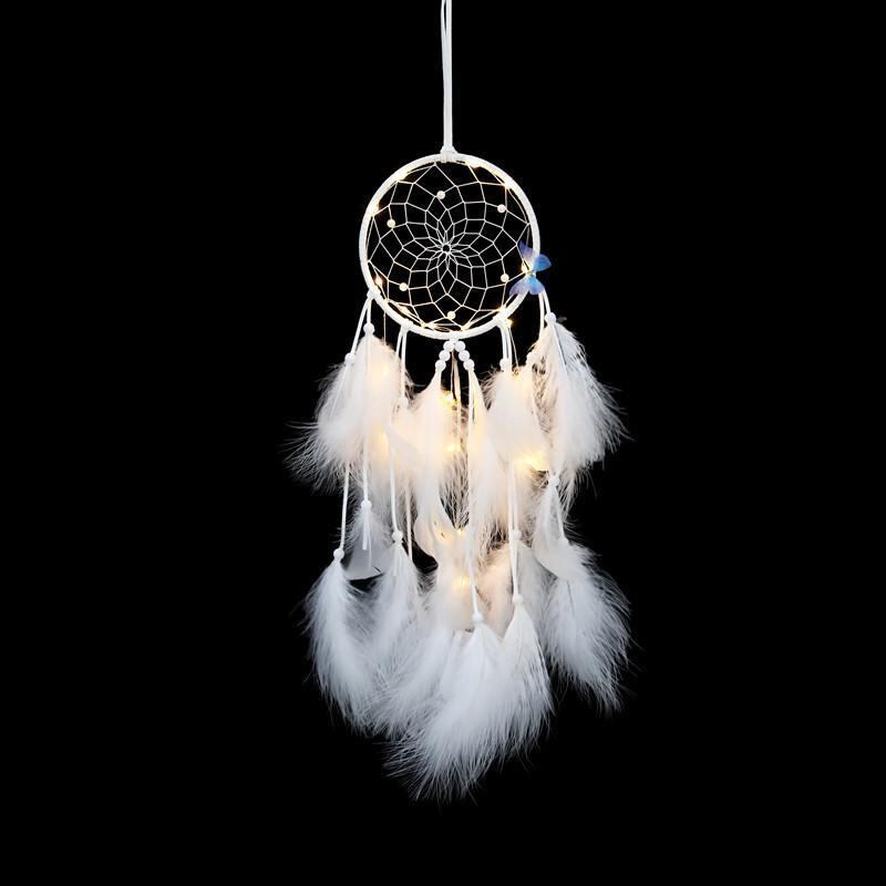 ドリームキャッチャー 風鈴 白雪姫 青い蝶 手作り ハンドメイド ライト付き 吊り下げ飾り 新築祝い 卒業祝い ギフト プレゼント おしゃれ インテリア 雑貨 癒し 幻想的 部屋 リビング 玄関