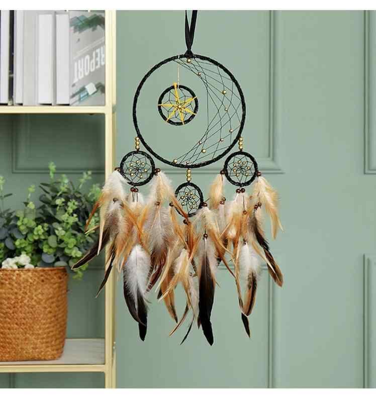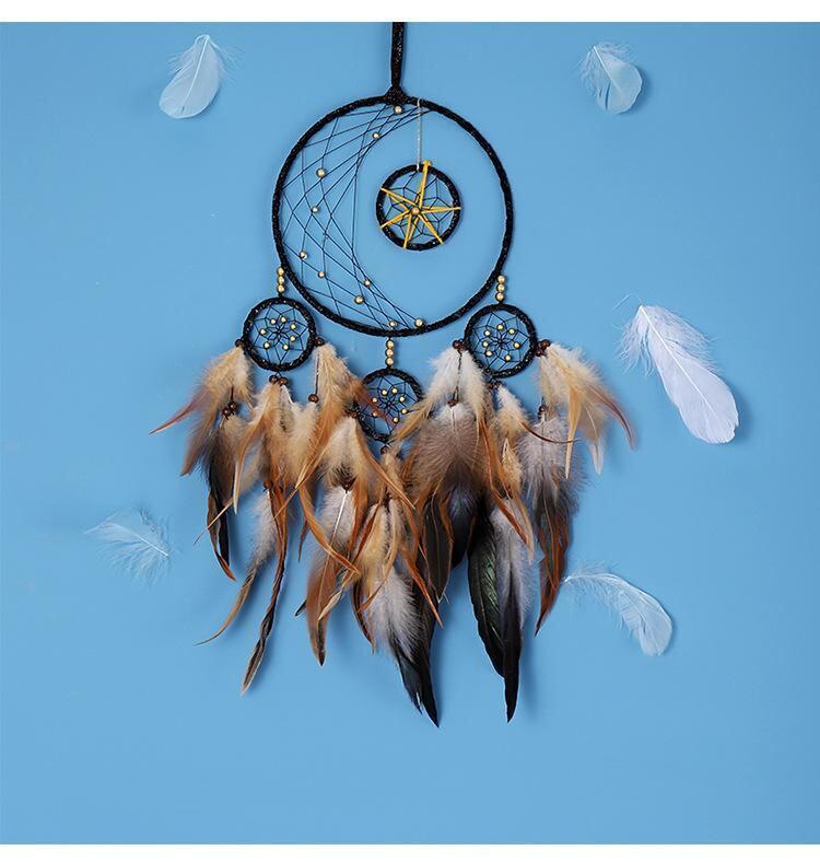 ドリームキャッチャー 女の子 子供部屋 ガールズルーム 壁掛け インディアン 五連リング ブラック 羽毛 フェザー 風鈴 ハンドメイド LEDライト付き おしゃれ かわいい インテリア ベッドサイド 寝室 装飾 プレゼント ギフト オーナメント