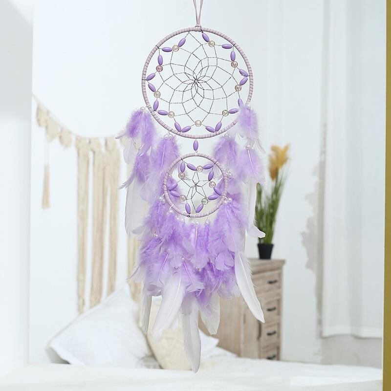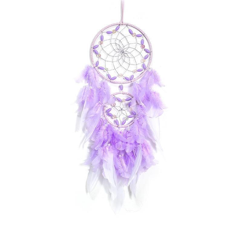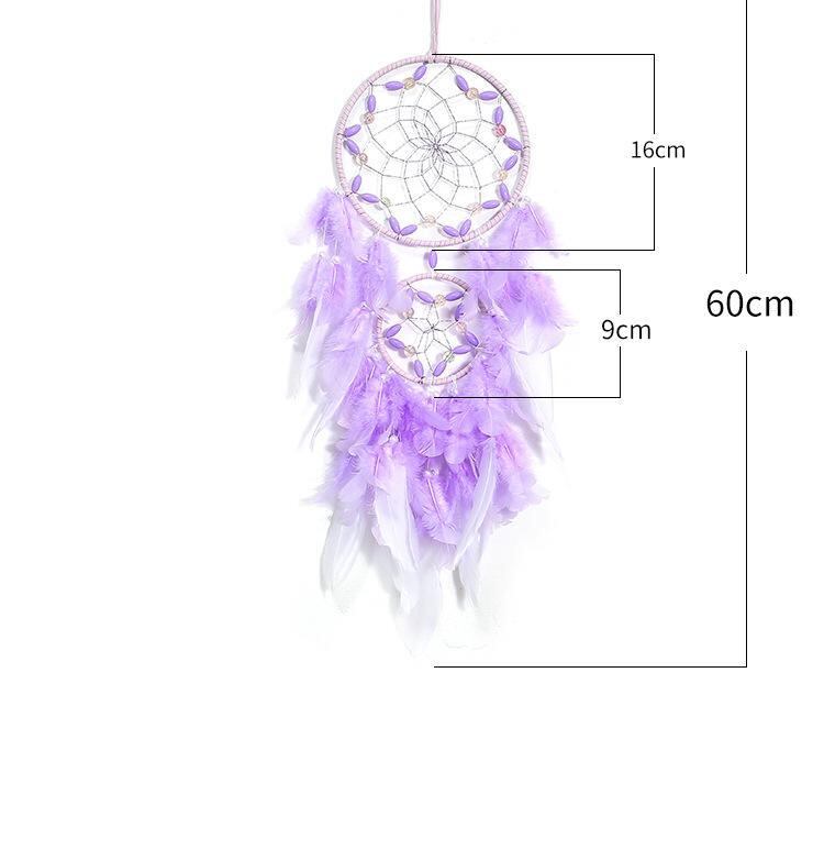 ドリームキャッチャー パープル 幻想的な紫 手作り 羽根 フェザー インテリア 壁掛け ウォールデコ ネイティブアメリカン風 エスニック調 癒しのお守り 飾り オブジェ 16cm