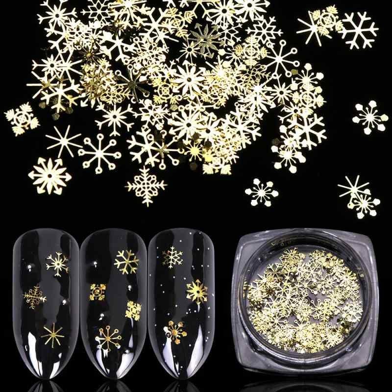 ネイルパーツ 金色 雪の結晶 ホログラム スノーフレーク グリッター ネイルアート クリスマス 冬ネイル デコレーション キラキラ 輝き 上品 大人かわいい セルフネイル