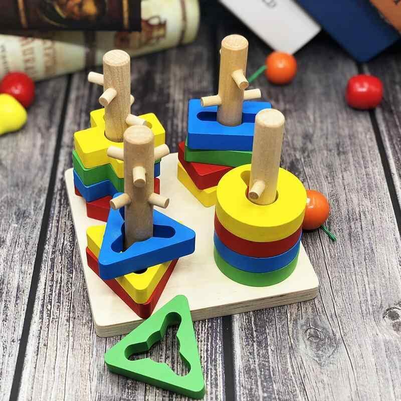 積み木 ベビー キッズ 男の子 女の子 DIY 知育玩具 脳トレ 早期教育 幼児教育 啓蒙 木製 天然木材 水性塗料 型はめパズル 四つセット 図形認識 カラフル 集中力 思考力 想像力 指先知育 発達促進 室内遊び 誕生日プレゼント 出産祝い