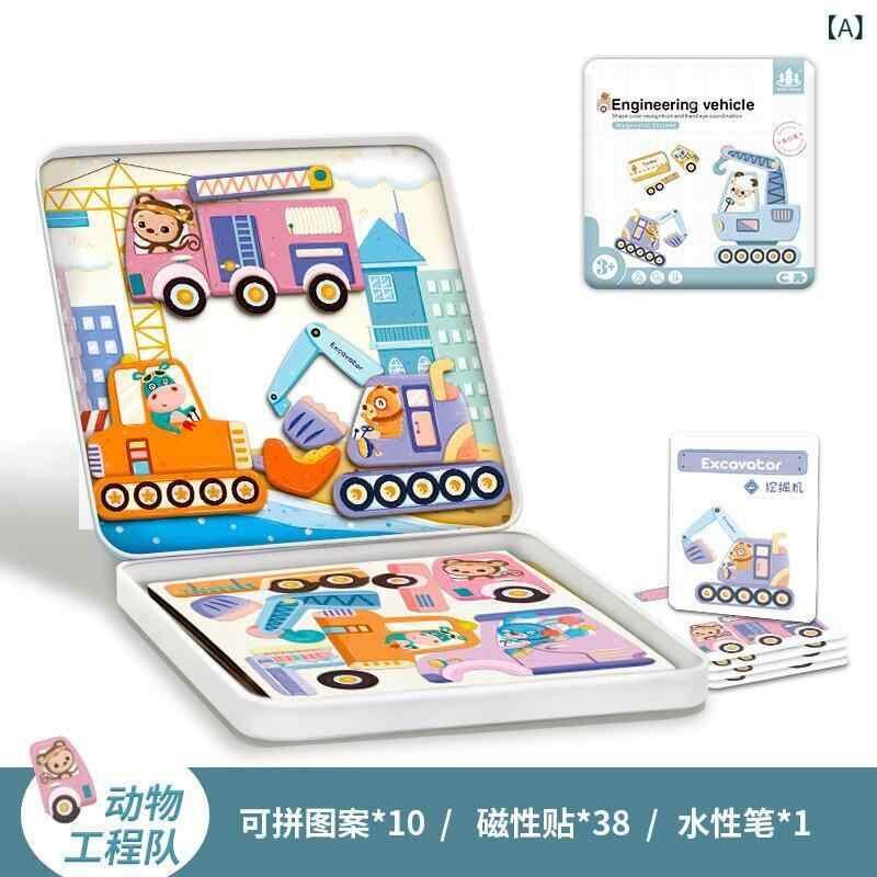 知育玩具 男の子 女の子 木製 マグネットパズル 交通 動物 乗り物 幼児 3歳 4歳 5歳 6歳 学習 思考力 想像力 集中力 スチール缶ケース 収納ケース付き 誕生日 クリスマス プレゼント ギフト