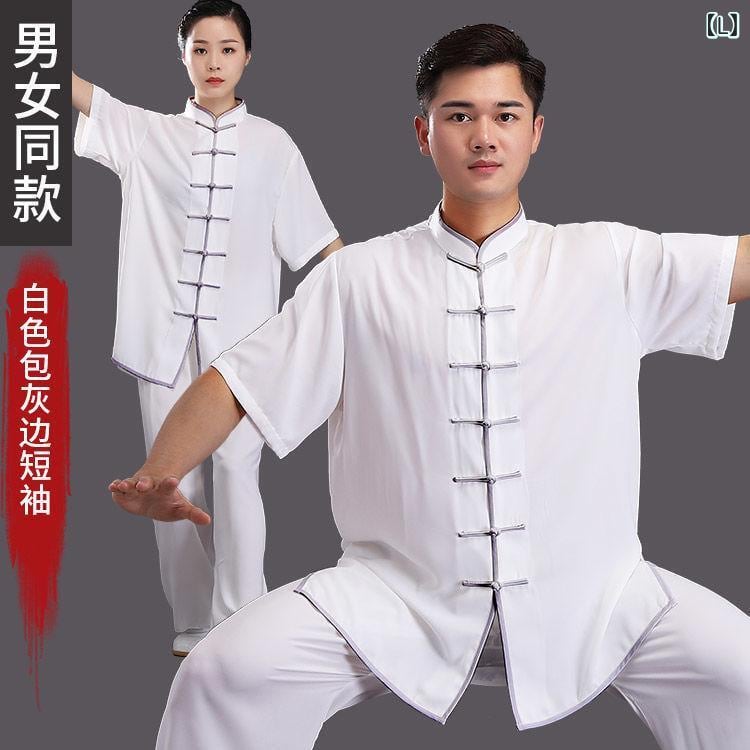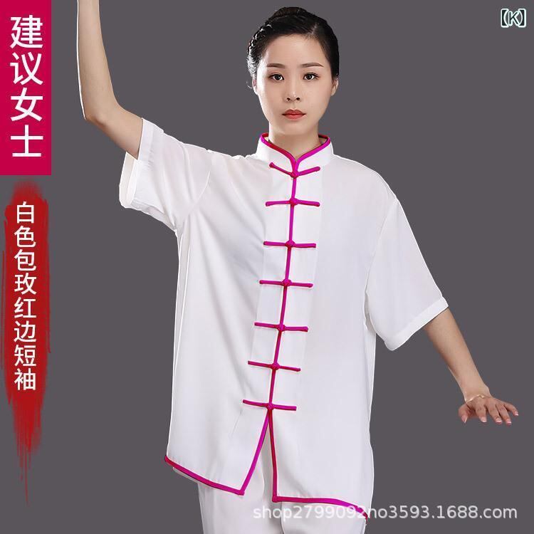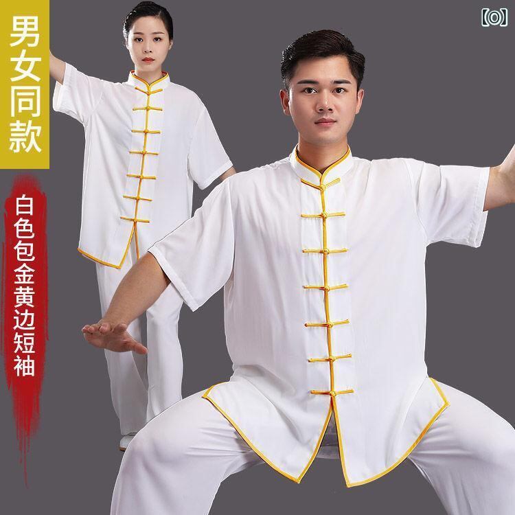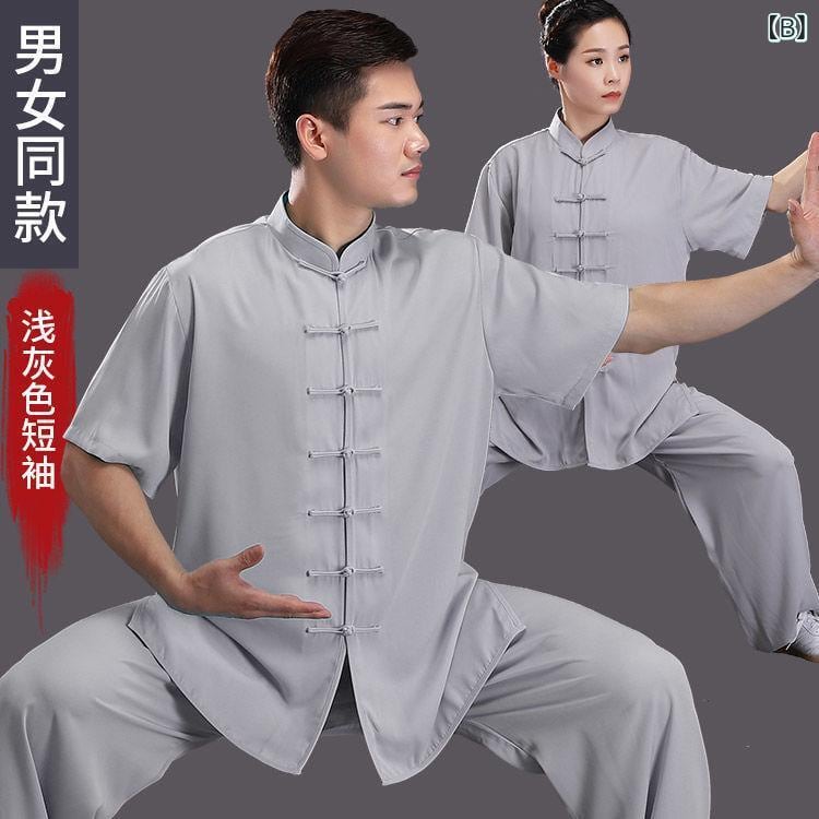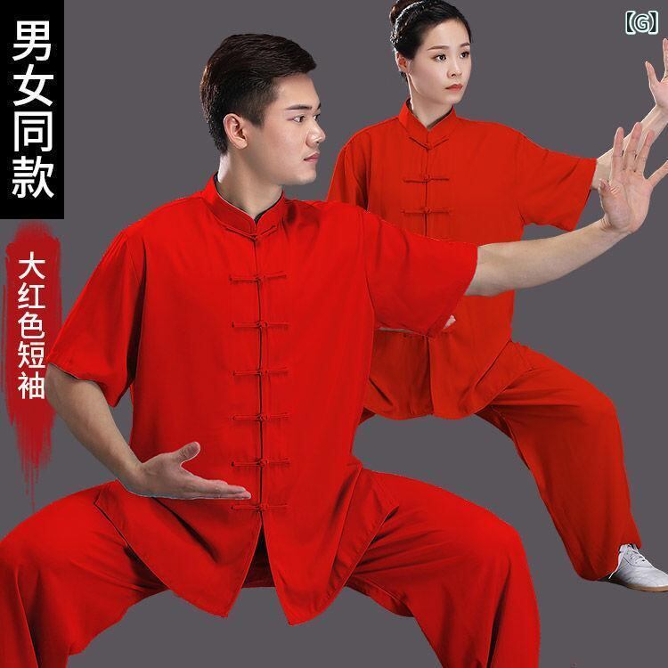 太極拳服 メンズ レディース 男女兼用 武術 練習着 訓練着 稽古着 スポーツウェア 半袖トップス ポリエステル 混紡素材