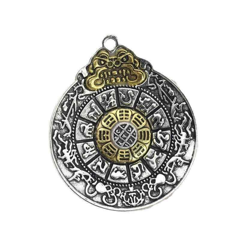 ネックレス 十二支 九宮八卦 合金 メッキ加工 回転式 ペンダントトップ ウエストチャーム バッグチャーム 根付 民族風 レトロ調 アクセサリー