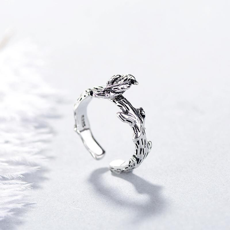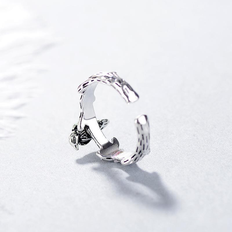 指輪 レディース 小鳥 フェニックス 不死鳥 ひな鳥 木の枝モチーフ レトロ アンティーク調 二次元デザイン 個性的 パンク 合金製 古銀メッキ オープンリング サイズ調整可能 ファッションアクセサリー ギフト