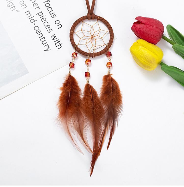 ドリームキャッチャー 車用 ルームミラーアクセサリー エスニック 民族調 カラフル マルチカラー 編み込み 羽 フェザー チャーム オーナメント 吊り下げ