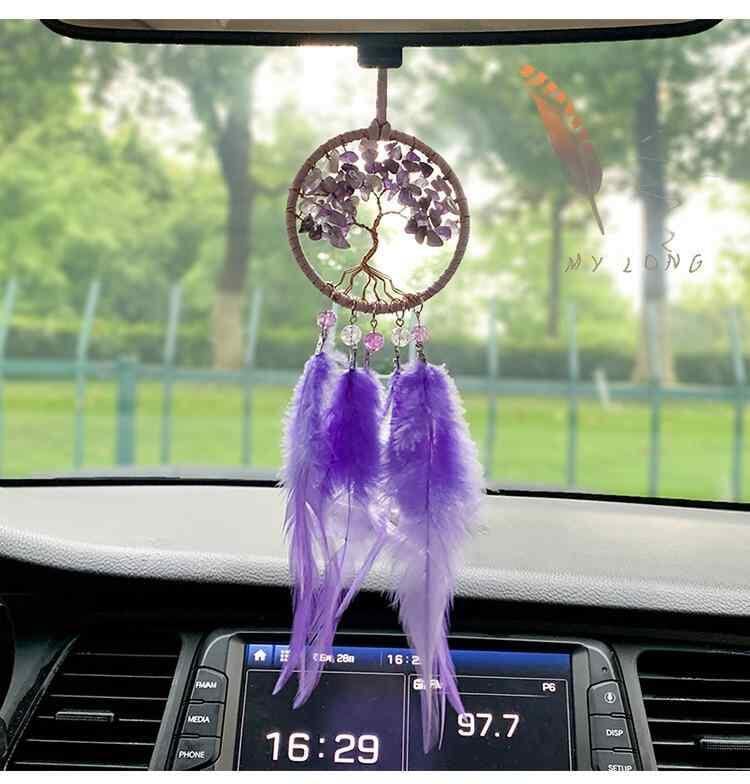 車用オーナメント 天然石 クリスタルチップ 紫 パープル 銅線編み 生命の樹 金運 招財 開運 パワーストーン ラッキーアイテム お守り 手作り カーチャーム 車内装飾 インテリア 癒し
