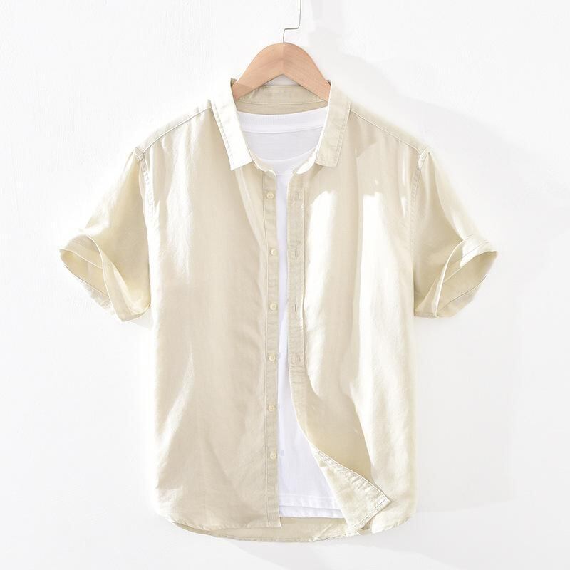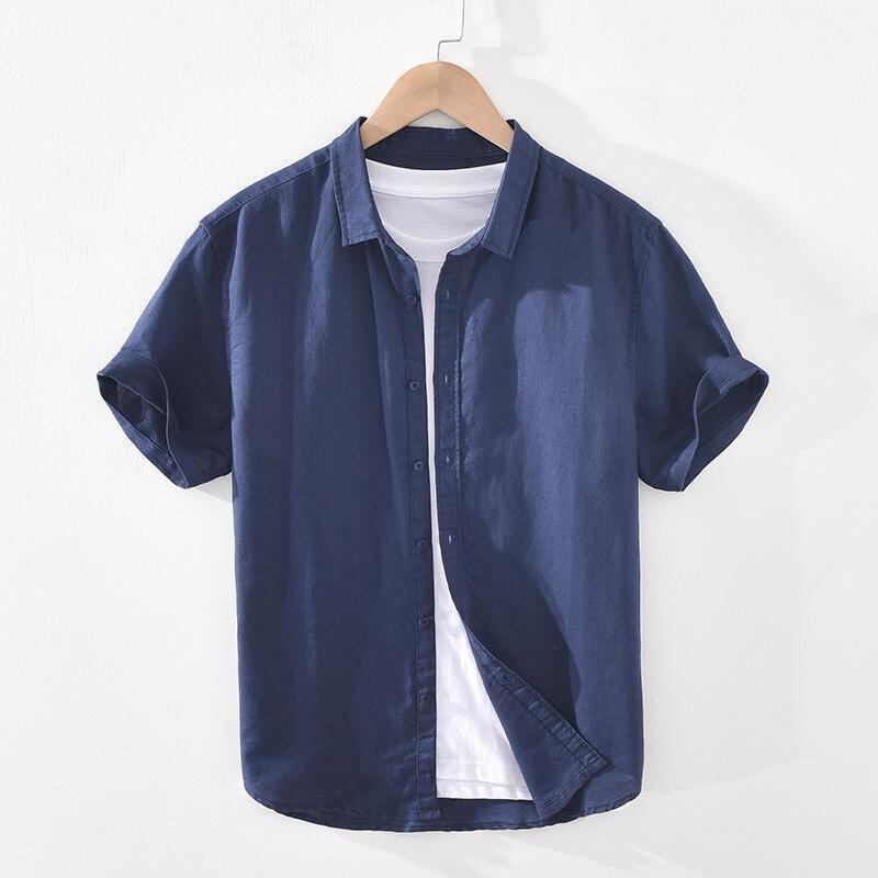 シャツ メンズ 男性用 ベーシック カジュアル 綿麻 半袖 薄手 通気性抜群 ゆったり ノーアイロン 開襟 普段使い デイリーユース リラックスフィット 夏物