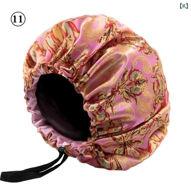 ナイトキャップ レディース 花柄 サテン地 調節可能 ボタン付き ヘアキャップ 就寝用帽子 産後用 ポリエステル 丸型 美髪ケア