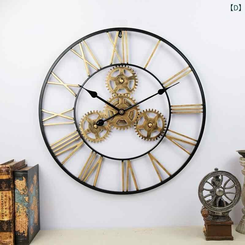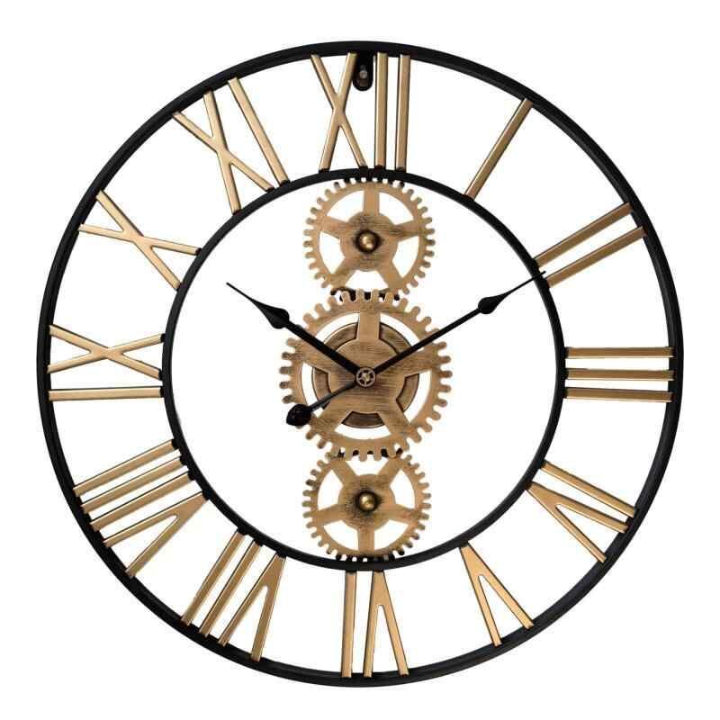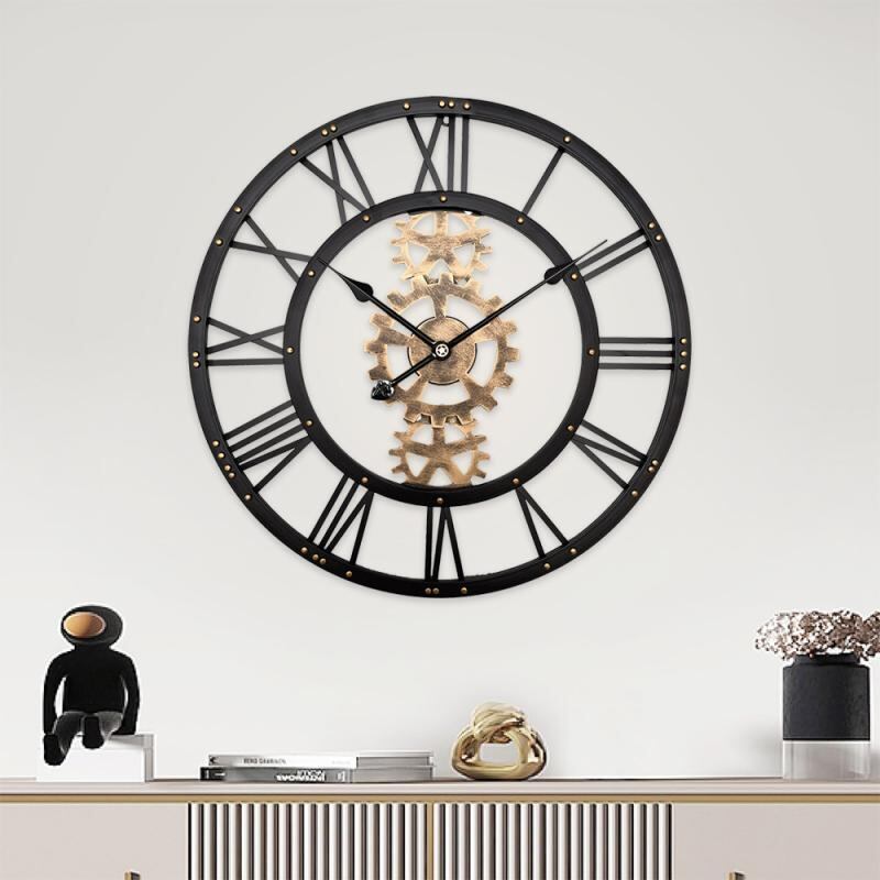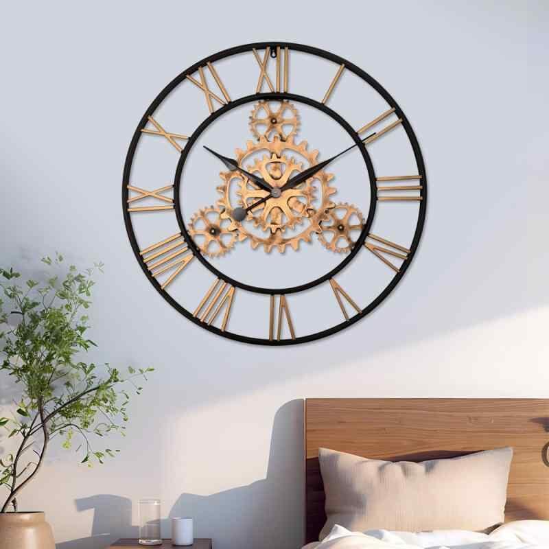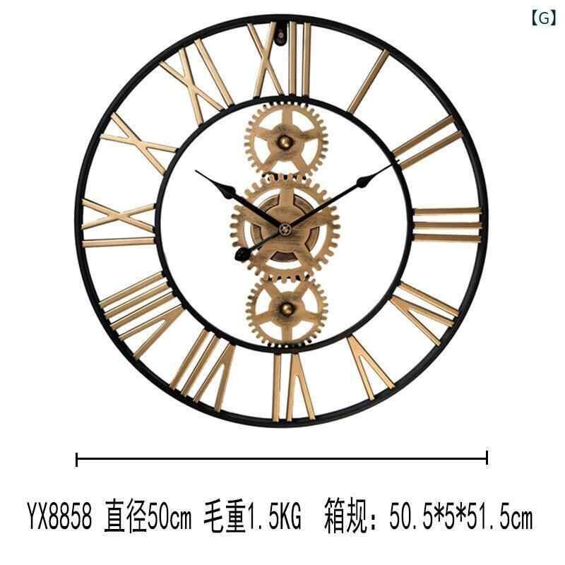 壁掛け時計 ウォールクロック アイアン 歯車 アンティーク調 インダストリアル レトロ ビンテージ 静音 サイレントムーブメント 連続秒針 金属製 円形 リビング 寝室 オフィス 店舗用 インテリア装飾 ゴールド ブラック