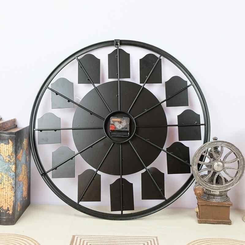 掛け時計 両面表示 静音 アメリカン ヨーロピアン ヴィンテージ アイアン製 レトロ調 円形 透かし彫り メタルフレーム リビング 寝室 オフィス 書斎 インテリア シャビーシック アナログ表示 電池式