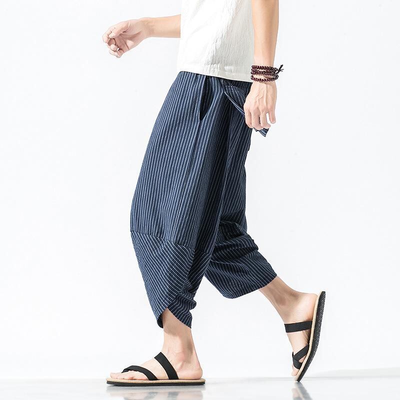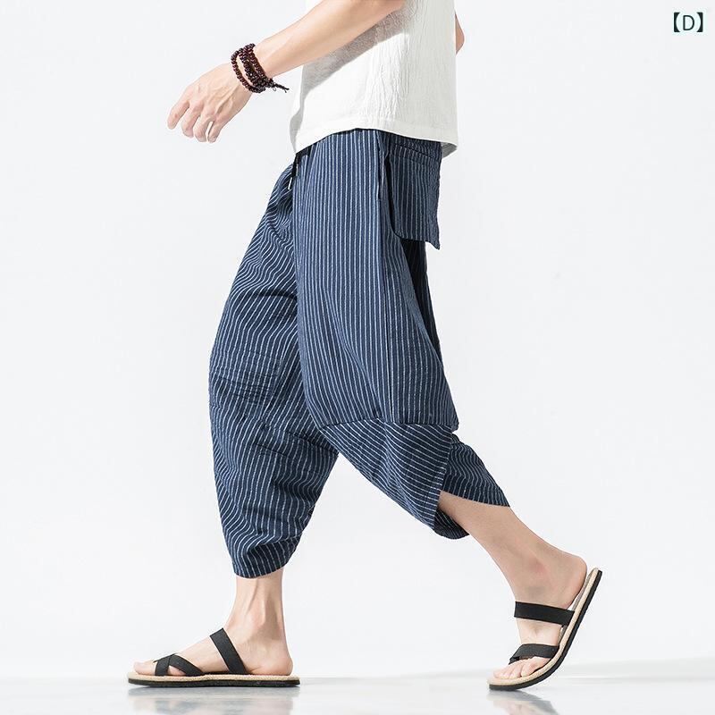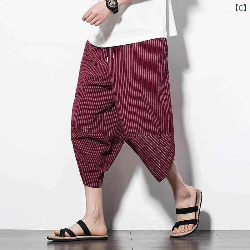 サルエルパンツ メンズ リネン 綿麻 ビーチパンツ タイ象柄 七分丈 ワイド ルーズフィット ゆったり 大きいサイズ チャイナ風 エスニック カジュアル アラジンパンツ 夏 普段使い 旅行 リラックスウェア 無地