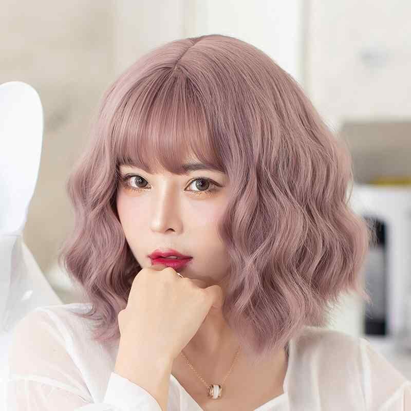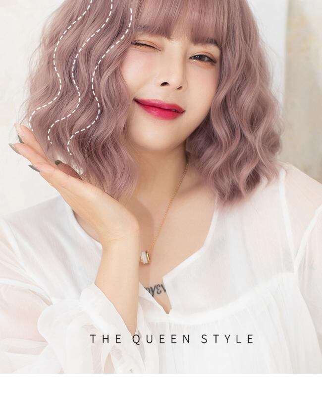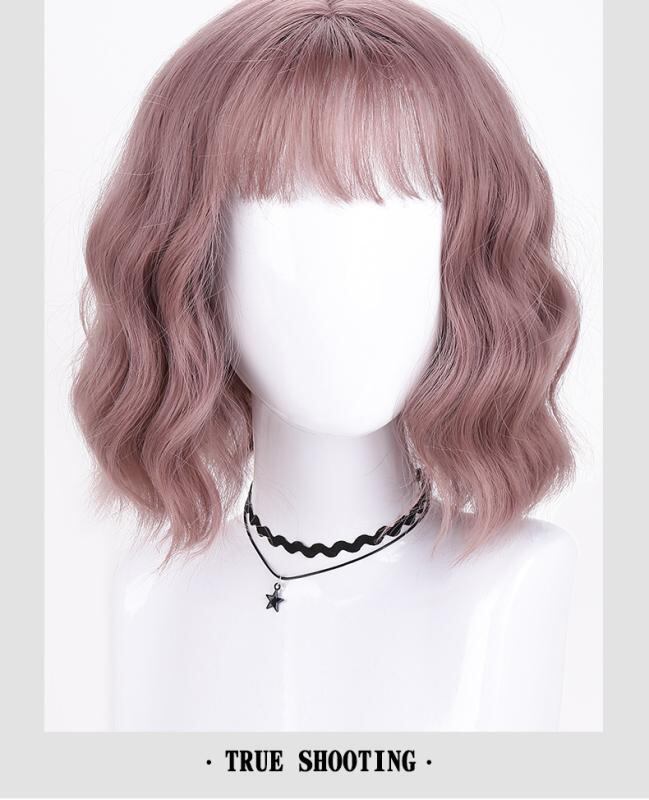 ウィッグ レディース ロリータ ショート JKスタイル ぱっつん前髪 くるくるカール ボリューム ウェーブ 自然な仕上がり 高温耐熱ファイバー 小顔効果 アッシュブルー ラベンダーピンク