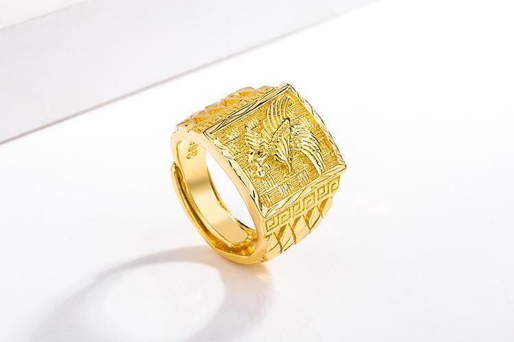 リング ペア カップル フェニックスモチーフ 男女兼用 指輪 ゴールドメッキ 真鍮製 オープンリング フリーサイズ 結婚式 ウェディング ブライダルアクセサリー 韓国風 華やか プレゼント ギフト