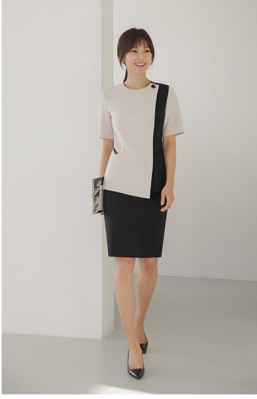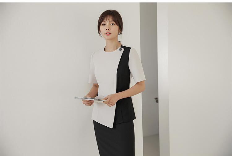 ユニフォーム レディース エステティシャン ネイリスト アイリスト 施術着 作業着 美容 ワークウェア 韓国風 ポリエステル 春夏 ライトアプリコット 黒 紺 セットアップ