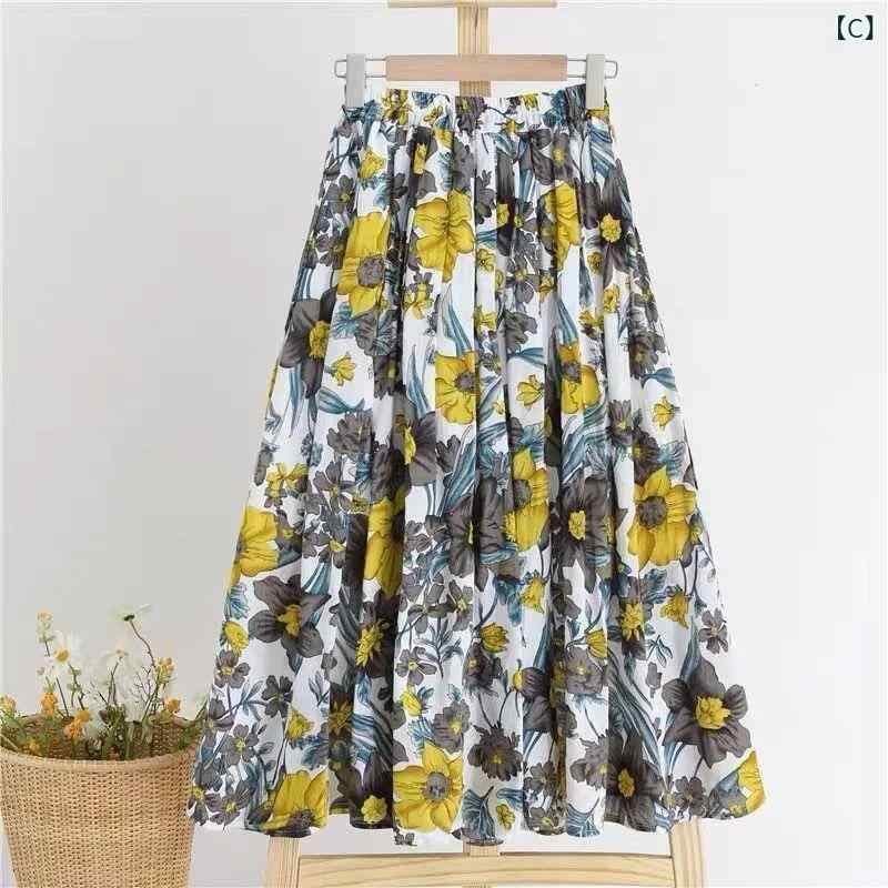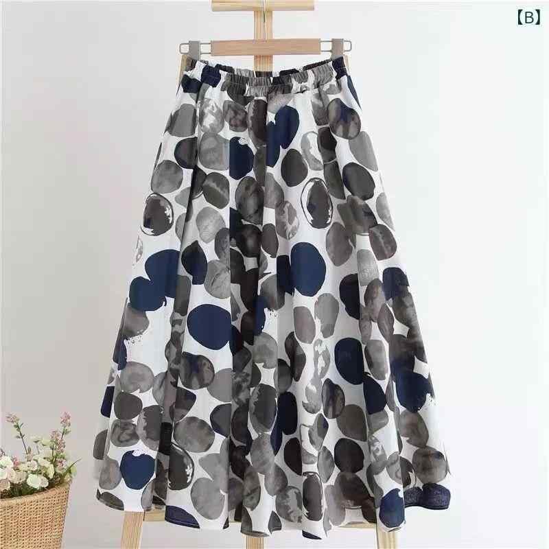 スカート レディース 大きいサイズ ゆったり 夏 ドット柄 水玉 花柄 プリント Aライン ミモレ丈 フレア ウエストゴム 細見え 体型カバー ポリエステル 通勤 オフィス 普段使い エレガント カジュアル