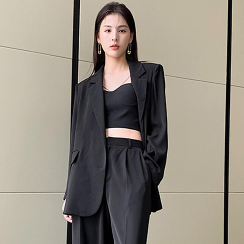 ジャケット レディース 黒 高級感 春秋 薄手 韓国 ゆったり デザイン性 小規模ブランド 長袖 カジュアル 小さいスーツ
