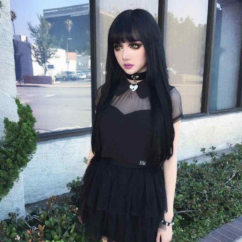 ウィッグ レディース 女性用 ロングストレート ぱっつん前髪 ゴシック ロリータ 小顔効果 フルウィッグ コスプレ 自然な 耐熱ファイバー ブラック ダークブラウン ライトブラウン ライトゴールド