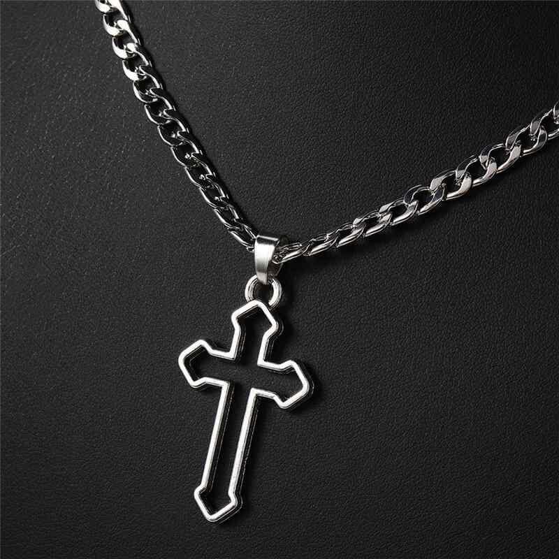ネックレス ユニセックス 韓国ストリート ダークゴシック クール 日本風 ロザリオ 十字架 クロス ペンダント チェーン アクセサリー