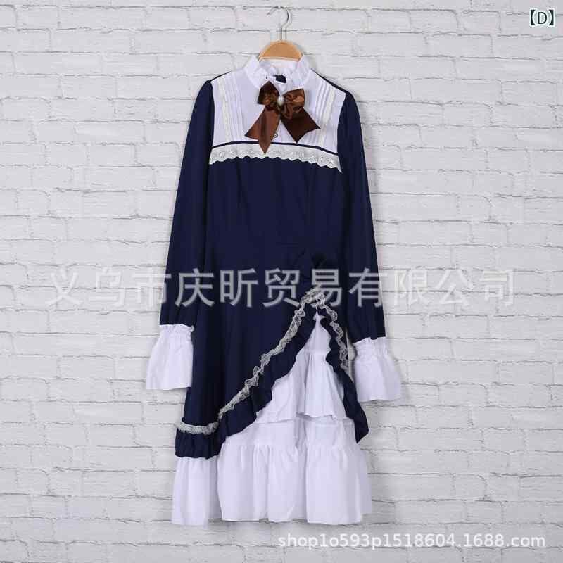 ワンピース レディース ロリータ ハーフハイネック モックネック フレアスリーブ ベルスリーブ 配色 切替 リボン Aライン フレアスカート フェイクツーピース ミディ丈 ボルドー ブラック ブルー