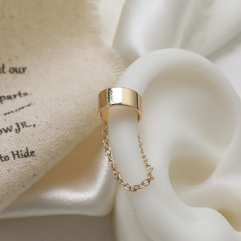イヤーカフ レディース 韓国風 シンプル ミニマル クールスタイル チェーン タッセル 高級感 メタル ゴールド シルバー イヤリング ノンホールピアス