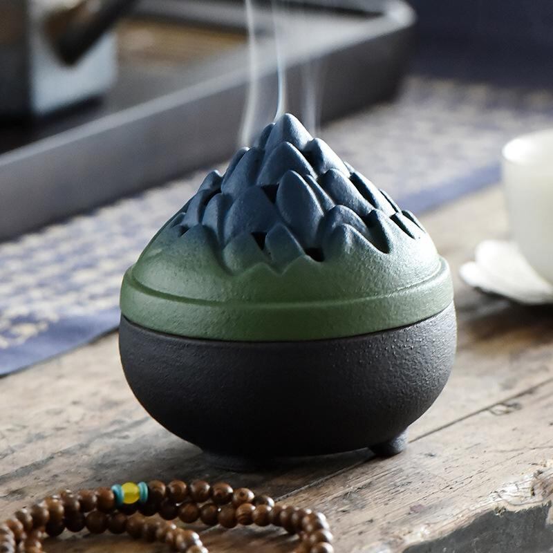 香炉 陶器 山型 渦巻き線香立て お香 白檀 沈香 家庭用 室内 禅風 茶道 置物 セラミック インテリア 香立て レトロ おしゃれ 和室 書斎 癒し リラックス アロマ 玄関 リビング 寝室 ギフト 贈り物 和モダン