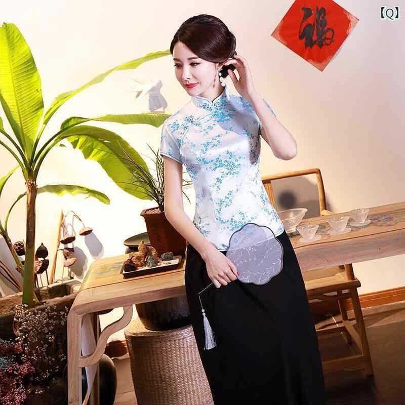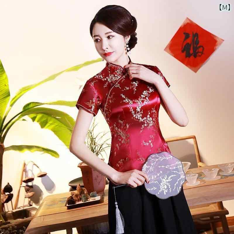 旗袍 レディース ミセス 改良 チャイナドレス トップス レトロ クラシック スリムフィット ショート丈 スタンドカラー 半袖 織錦緞 スパンデックス 普段使い 発表会 ステージ衣装 大きいサイズ ゆったり