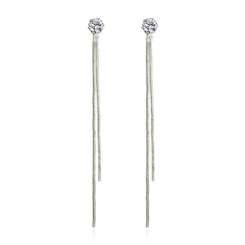 ピアス レディース ロング丈 タッセル フリンジ ジルコニア メタル ドロップピアス 個性的 シンプル カジュアル エレガント ゴールド シルバー 揺れるデザイン 韓国ファッション トレンド | cybercart