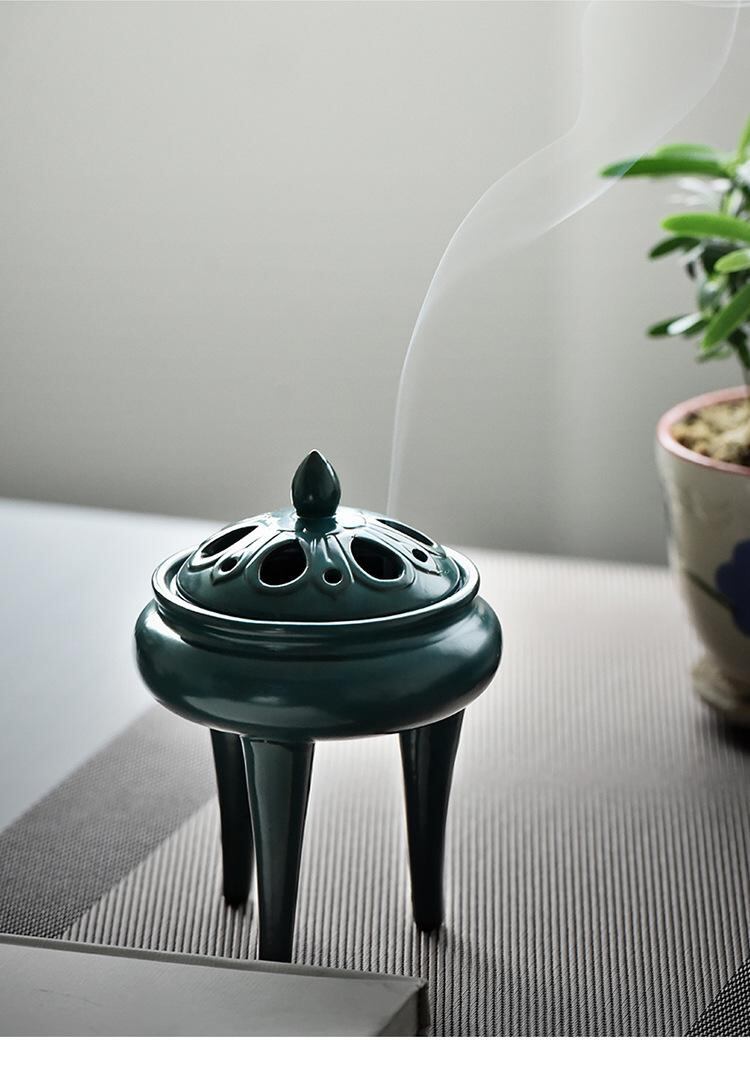 香炉 蓮の花 陶器製 高足 三足 脚付き 渦巻き線香 香立て 沈香 白檀 自宅用 室内 書斎 茶道用 リビング 寝室 玄関 和風 禅風 モダン インテリア 飾り 置物 癒し リラックス | cybercart