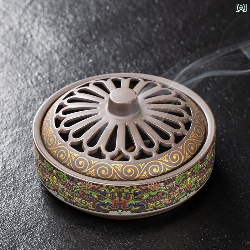 蚊取り線香 ホルダー お香立て 蓋付き 線香皿 室内用 家庭用 白檀 大型 耐火 陶器製 新中式スタイル