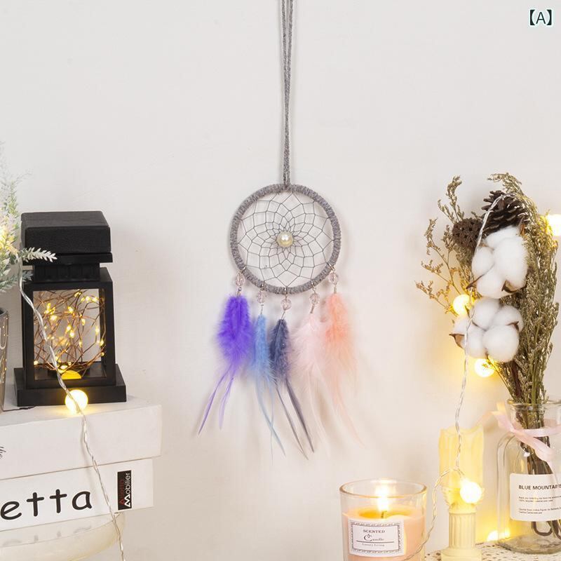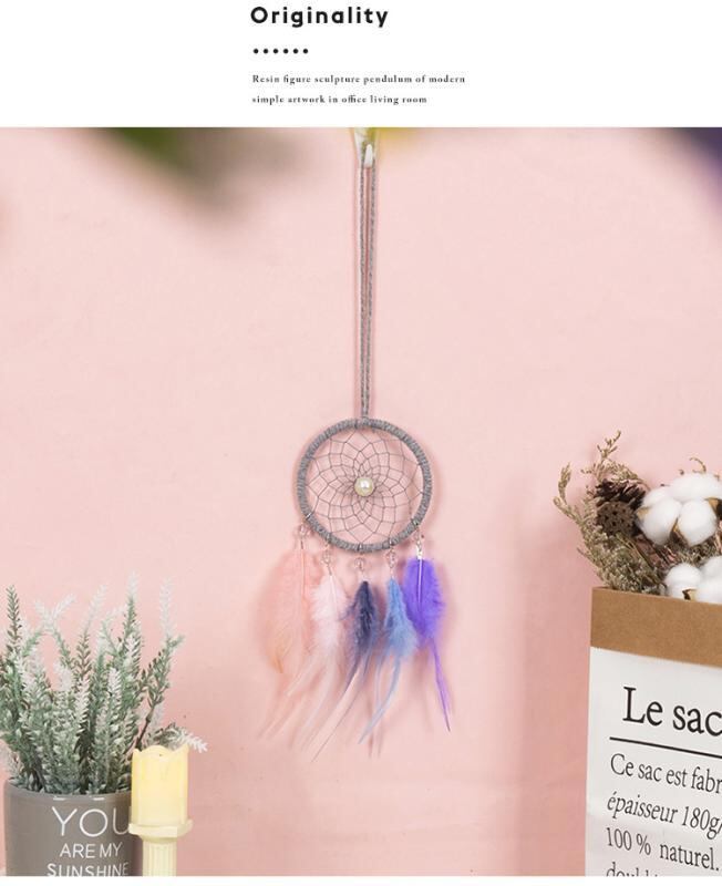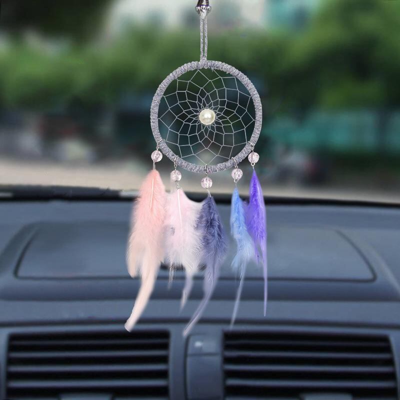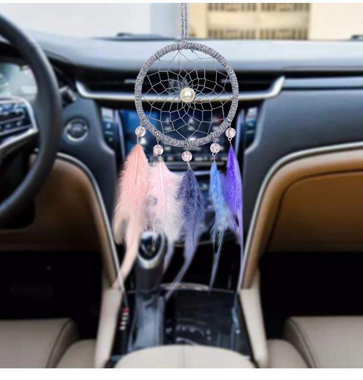 ドリームキャッチャー 羽毛 フェザー 車用 車内装飾 インテリア雑貨 リビング 部屋飾り ふんわり ナチュラル クラシカル アンティーク調 幸運 お守り